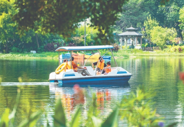大渡口公园宛如一幅绚丽画卷,湖水在秋阳下泛着粼粼波光,市民们悠然登上小船,脸上洋溢着惬意,尽情享受着秋日划船的欢乐时光;金鳌田园宛如一处世外桃源,阳光轻柔地洒在古朴的茶桌上,家人们围坐其间,悠然地泡上一盏香茗,享受着难得的悠闲与惬意;大滨路宛如一条健身步道,露营的帐篷如同一朵朵彩色蘑菇,错落有致地散落在草地上,游客们惬意地躺在靠椅上,任由秋阳轻抚脸庞……