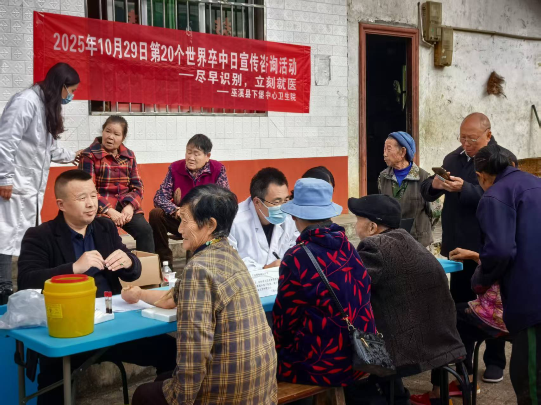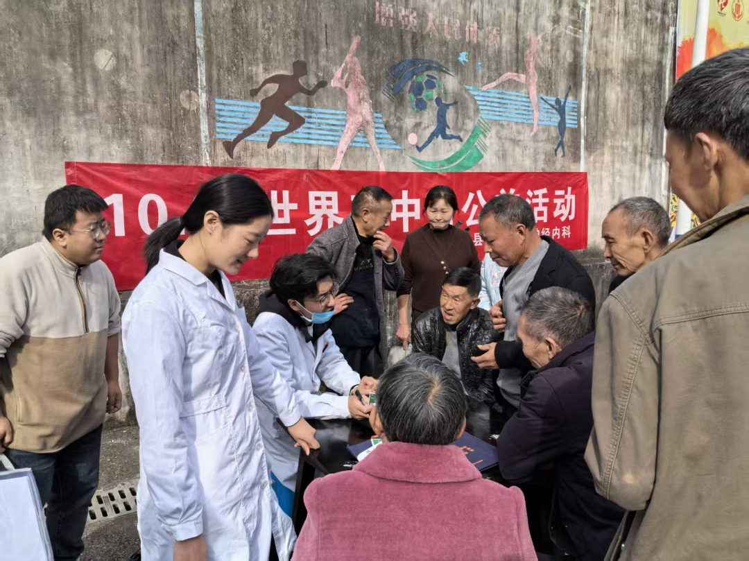 10月29日,第二十个世界卒中日,为提升农村居民对脑卒中(俗称 “中风”)的认知与预防意识,下堡中心卫生院联合县人民医院组建专家团队,深入辖区村社开展“尽早识别,立刻就医”主题送健康系列活动,将防治服务送到群众家门口。