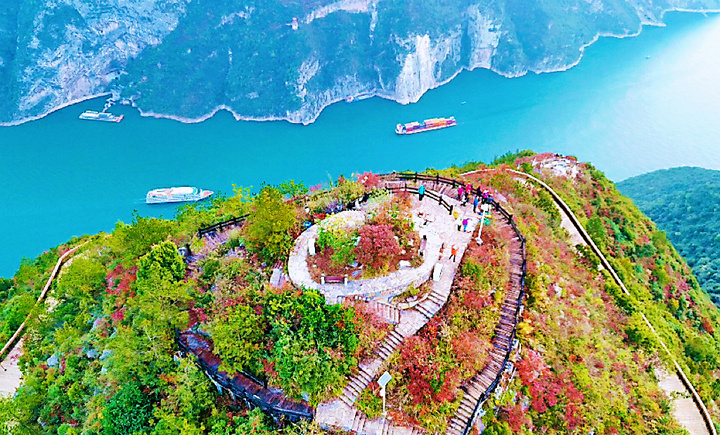 秋冬之际,巫山再迎红叶烂漫时。在长江巫峡段,连绵的黄栌树叶次第染红,从今年 11 月至次年1月,将两岸群山装点成一片绚烂的红叶海洋。