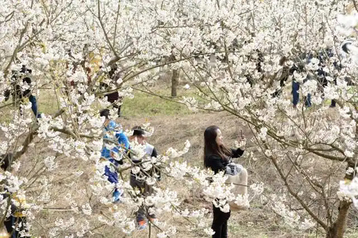 “每年2月下旬的早春,是我村樱桃花盛开时节,漫山遍野的樱桃花把村子装扮得如诗如画,吸引周边市民前来赏花拍照,此时,也是村里柑橘成熟时节,柑橘园对外开放采摘,让游客既可赏花也能体验采摘的乐趣。”肖维东说。