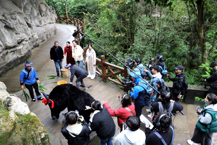 大足融媒—掌上大足讯(记者 谭显全 文/图)11月17日,宝顶山石刻牧牛图造现场热闹非凡,宛如一颗文化明珠在时光长河中闪耀出独特光芒,一场跨越时空的文化盛宴在此激情上演。“001号讲解员”张国立携手青年演员蔡文静、主持人龚韵熹和节目组一行人员齐聚于此,共同见证石柱土家国家非遗“玩牛”与大足石刻牧牛图的奇妙交融。