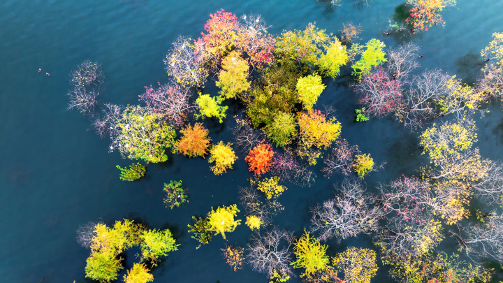 初冬时节,汉丰湖里水杉林与碧水相映成趣,形成了独特的“水上彩林”景观。放眼望去,橙红、金黄的水杉矗立在湖水之中,树影婆娑,倒影如画,宛如一幅天然调色盘。微风拂过,涟漪轻漾,彩林与湖光交相辉映,将整个汉丰湖渲染成浓郁的冬日诗意画卷。这一生态奇观吸引了众多游客驻足,成为开州生态旅游的亮丽名片,展现了开州湿地保护与生态建设的丰硕成果。