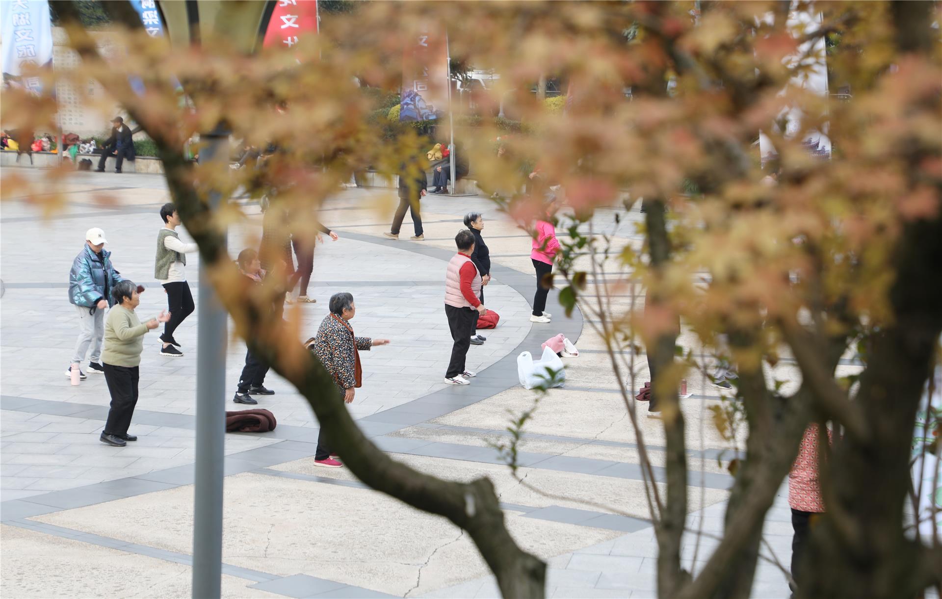11月24日下午,在铜梁城区雪庵公园内阳光倾洒,趁着冬日里难得的暖阳,市民纷纷走出家门,跳广场舞、游玩、散步……尽情享受着冬日的馈赠。