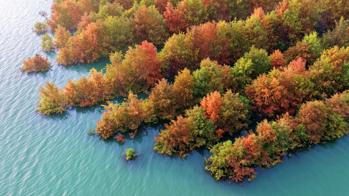 近段时间,石宝镇共和村江畔层林尽染,进入一年中最美的时节。红艳艳的杉林,金灿灿的银杏,与一江碧水、两岸青山共同构成一幅美轮美奂的生态画卷。