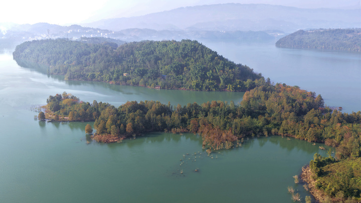 初冬以来,忠县皇华岛湿地灌木和水草色彩斑斓,与一江碧水相互辉映、美不胜收。