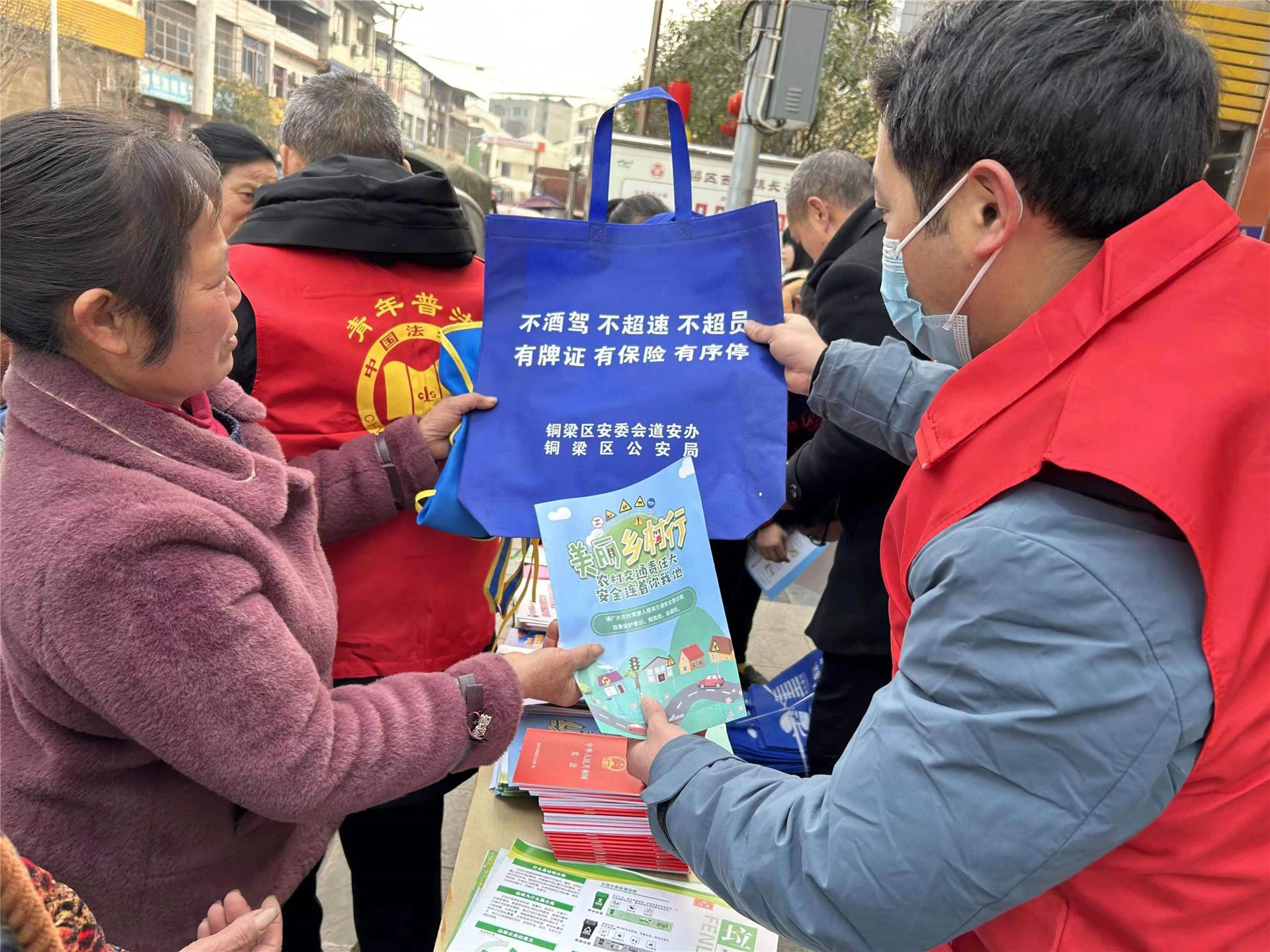 12月3日上午,铜梁区西河镇平安办联合铜梁区司法局西河司法所化身交通安全宣传员,向赶场群众宣传涉酒驾驶、超速超载、私自改(加)装、疲劳驾驶、逆向行驶以及违规操作等交通违法违规行为可能给个人、家庭和社会带来的严重危害,进一步提醒大家增强道路交通安全意识,遵守交通秩序,自觉养成文明交通行为。