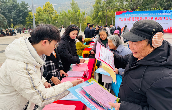 12月4日,县启动仪式暨集中宣传活动在逍遥广场举行。现场设置了宪法宣传、法律咨询、互动体验等多个区域,各单位业务骨干与普法志愿者通过发放手册、展示展板、现场答疑等方式,重点宣传宪法核心内容及与群众切身相关的法律法规。活动针对电信诈骗、养老服务等热点问题开展“以案释法”,并引入“手机砝码”消费维权指导、毒品模型展示等形式,增强了普法的直观性与实用性。(记者 翁鑫 陶钰婷)