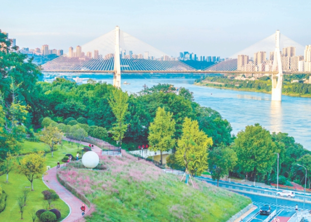 傍晚时分的钓鱼嘴滨江绿道,江风拂面带来阵阵清凉。跑步爱好者沿着约4.2公里长的钓鱼嘴绿道畅快奔跑,骑行者穿梭在绿树间,市民们三五成群地散步聊天,欣赏着长江两岸的璀璨夜景。这条集生态防护、休闲游憩、健身运动于一体的绿道,串联起沿线公园、绿地与城市街区,成为市民健身休闲的热门选择,更凭借独特的生态景观和完善的配套设施,荣获市级“最美山城绿道”称号。而黄桷记忆坡地公园则以巧妙的地形利用、丰富的植物配置和浓厚的人文气息,获评市级“最美口袋公园”,成为市民打卡的热门地点。一条条绿道互联互通,一个个公园点缀城区,让大渡口的绿色空间更加立体多元,市民的休闲选择也愈发丰富。