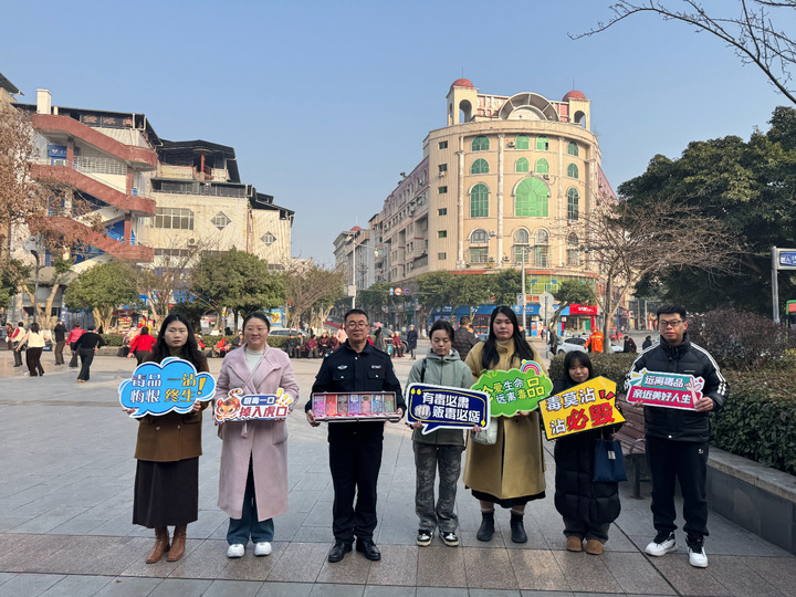 为大力营造创建全国文明城区浓厚氛围,筑牢禁毒安全防线,1月13日,大足区公安局以“禁毒+创文”融合宣传为抓手,组织禁毒专干、禁毒社工等工作人员来到南门广场,开展“珍爱生命远离毒品、共创文明美好家园”为主题禁毒宣传教育活动。