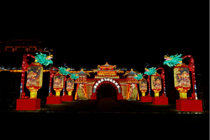 以“忠义三国·龙境奇彩”为主题的马年灯会