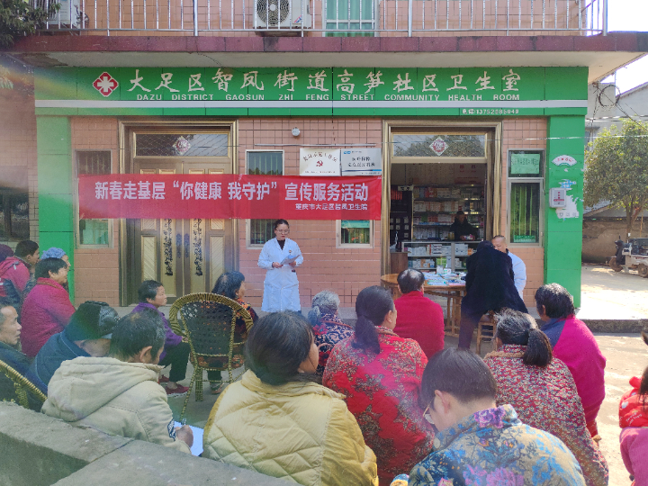 2月6日,大足区智凤卫生院组织医务人员到高笋村,开展“你健康 我守护”新春走基层宣传服务活动,将健康关怀与医疗服务送到村民家门口。