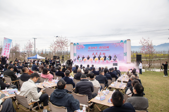 千里樱园春色好,百里画廊气象新。3月3日上午,“花开四季·香约忠州”重庆忠县第三届赏花季暨第五届樱花节启动活动在白公街道千里樱园举行,吸引众多县内外游客前往游览赏花、享受春色旖旎。
