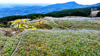 阳春三月,海拔800多米的忠县黄金镇大岭佛耳岩景区,桃花、李花、油菜花竞相绽放,粉红似霞,雪白如雪,金黄若金,与民居、青山、蓝天相映成景,描绘出一幅五彩缤纷的春山画卷,为游客开启一场春日视觉盛会。
