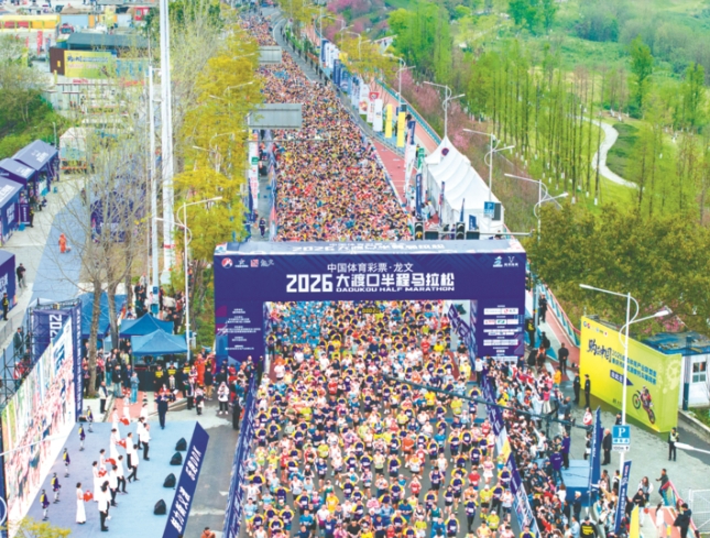 3月22日,中国体育彩票•龙文•2026大渡口半程马拉松在大滨路鸣枪起跑,吸引来自全国各地10000名选手参赛。