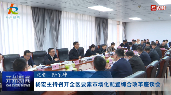 4月2日,区委副书记、区长杨宏主持召开全区要素市场化配置综合改革座谈会。他强调,要深入学习贯彻习近平总书记关于建设全国统一大市场的重要论述和视察重庆重要讲话重要指示精神,牢牢把握重庆市获批全国要素市场化配置综合改革试点机遇,牢固树立和践行正确政绩观,强化系统集成,深化改革创新,全面提高要素协同配置效率,加快形成更多具有开州辨识度的标志性改革成果。区领导黄成涛、廖雪林、李先凯、田贵虎、肖朝琼参加。
