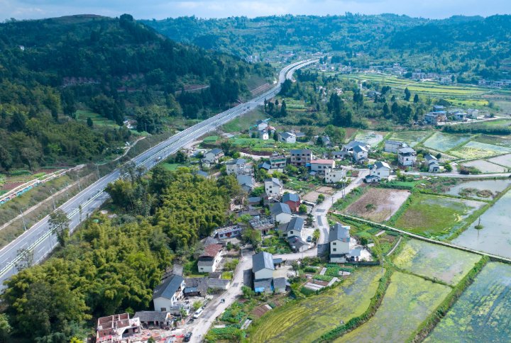 近日,俯瞰大足区棠香街道和平村,宽阔平坦的公路、干净整洁的沿河步道、蜿蜒曲折的乡间小径纵横交错,串联起碧绿的田园、错落的村居与清澈的河流。春日里,青山叠翠、沃野铺绿,白墙黛瓦的民居点缀其间,车畅其路、人悦其行,一幅产业兴旺、生态宜居的美丽乡村画卷徐徐展开。