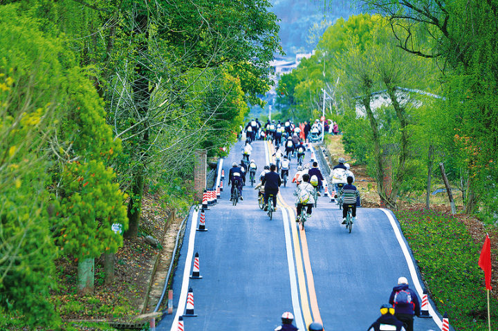 办好一场赛事,更要建好一座城市。我区以打造“重庆自行车骑行之城”为目标,构建“1+4+N”赛事体系:1个顶级标杆——中国公路自行车职业联赛(汉丰湖站);4大特色主题赛事——雪宝山和南山山地自行车爬坡挑战赛、竹溪和厚坝田园骑游赛;N场常态化环湖骑游活动,年均参与骑行活动的市民超2万人次。同时完善“骑行+”设施场景,46公里环汉丰湖绿道已全线贯通,下一步将重点对北岸20公里赛道进行智慧化改造,建设7公里滨湖北岸骑行示范线,布局“骑行之家”驿站,并规划建设自行车博物馆。