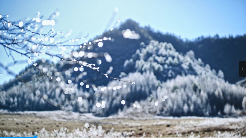 在西流溪水库,空气中水汽凝华形成的乳白色冰晶沉积物挂在树枝上。伴随晨间第一缕阳光,薄雾悠悠,树枝、大地都裹满了一层晶莹剔透的“霜花”,在阳光的照耀下,千姿百态,晶莹剔透,妖娆妩媚。