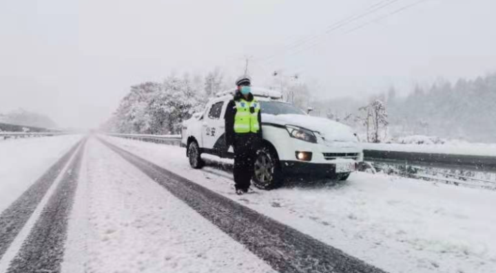 受强冷空气影响,重庆酉阳、奉节、彭水等地道路出现积雪,有关部门迅速行动,保障道路畅通。