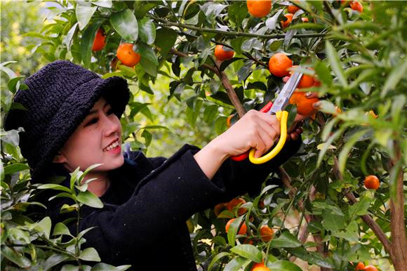 华龙网-新重庆客户端12月24日6时讯(通讯员 蔡秀 陈乾敏)眼下正是柑桔成熟的时节,在重庆市彭水县郁山镇陈家园村2组的砂糖桔基地里桔香满园,一个个黄橙橙的砂糖桔压弯了枝头,吸引不少市民前去采摘,大家穿梭在桔林里挑选着最红,最大的那一个。