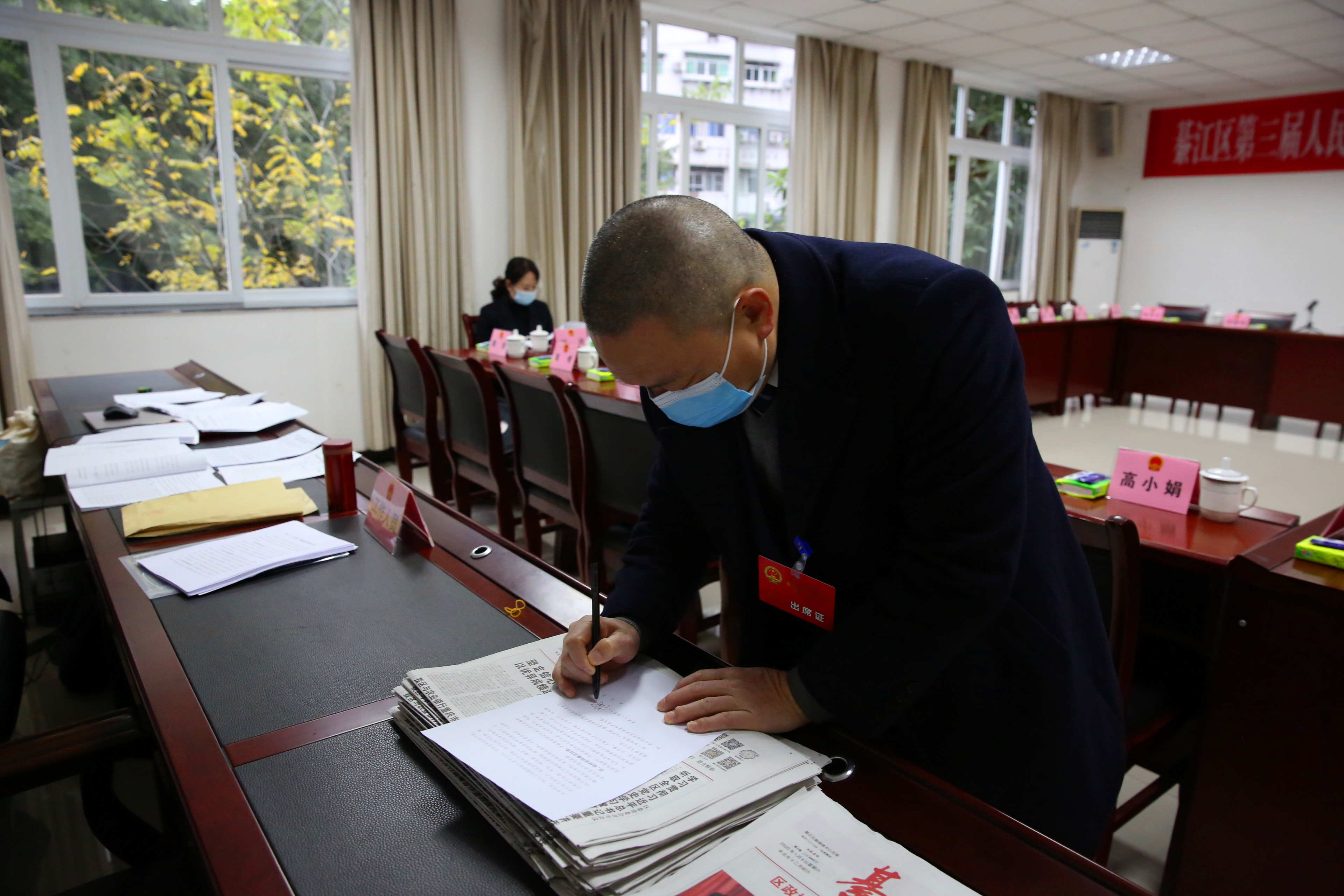“作为一名新当选的人大代表,倍感使命光荣、职责重大,我一定向老代表们学习,认真履职,把群众所需所想带到会场。”区人大代表,三角镇彭香村党总支书记、主任王勇表示。