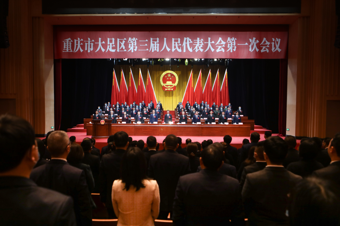 新当选的区人民政府区长徐晓勇在发言中表示,一张张选票重若千钧,体现的是300多名人大代表的信任和支持,承载的是107万大足人民的期望和重托,深感使命光荣、责任重大。将与区政府班子一道,在区委的正确领导下,始终做到思想同心、目标同向、行动同步,不折不扣把各项决策部署、工作要求落地落实。坚定不移把旗帜鲜明讲政治作为第一要求,始终在政治立场、政治方向、政治原则、政治道路上同以习近平同志为核心的党中央保持高度一致。坚定不移把为民服务作为第一使命,努力让人民群众的获得感、幸福感、安全感更加充实、更有保障、更可持续。坚定不移把高质量发展作为第一要务,将区委绘制的“规划图”化为政府工作的“施工图”,全力把区第三次党代会描绘的宏伟蓝图变为美好现实。坚定不移把依法行政作为第一准则,主动接受区人大及其常委会的法律监督、工作监督和区政协的民主监督,沉心静气干事业、齐心协力谋发展。坚定不移把清正廉洁作为第一底线,认真落实全面从严治党政治责任,打造忠诚干净担当的干部队伍,永葆共产党人的政治本色。