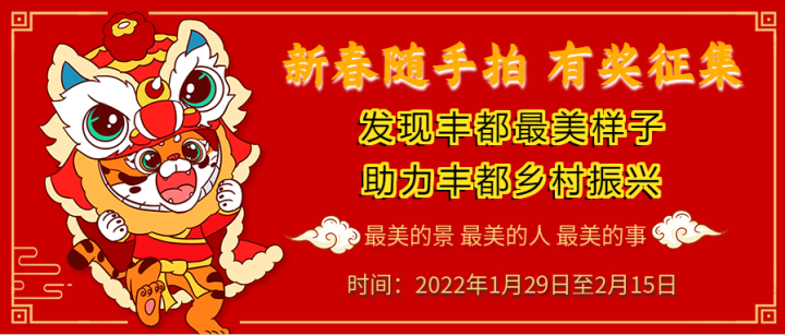 为展现丰都最美的样子,助力丰都乡村振兴,弘扬中华民族的传统文化、形成浓厚的节日氛围,丰都县委宣传部拟举办“发现丰都最美样子,助力丰都乡村振兴”新春随手拍有奖参与活动。