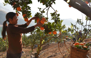巫峡镇王家庄屋果树专业合作社负责人邹贤亮与几名果农,正在果园里采摘纽荷尔。只见他们右手拿采摘剪刀,左手握住纽荷尔,阳光下纽荷尔的橙红色更加明艳。同样明艳的还有采摘人的面庞。一张张充满笑容的脸庞,一阵阵充满着幸福的笑声,混杂着清澈的鸡鸣声,愈传愈远。