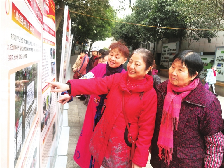 2月18日上午,新山村街道沪汉社区家和广场,居民在“全国文明城区创建”宣传展板前驻足观看。 据悉,新山村街道在此设置了21块创文展板和签名墙,通过积极宣传广泛动员,持续营造创建全国文明城区的浓厚氛围,推动居民文明素养的提升和激发参与文明创建的热情。(记者 文琰 摄)