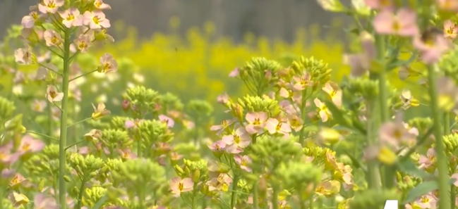 立春后 气温逐渐升高荣昌区清流镇大清流河畔的甘坝子油菜田里普通的金黄色油菜花与橘黄色 粉色等彩色油菜花陆续绽放色彩斑斓 美不胜收