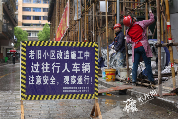 仲春时节,城口南大街凤凰楼老旧小区改造如火如荼进行。