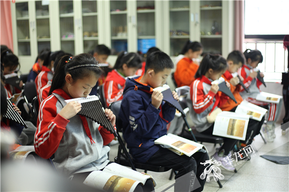 城口实验小学学生正在上排笛课。华龙网-新重庆客户端记者 陈美西 摄