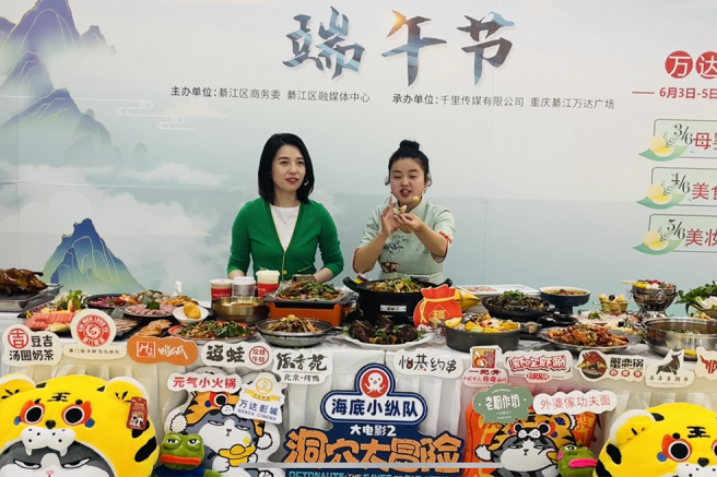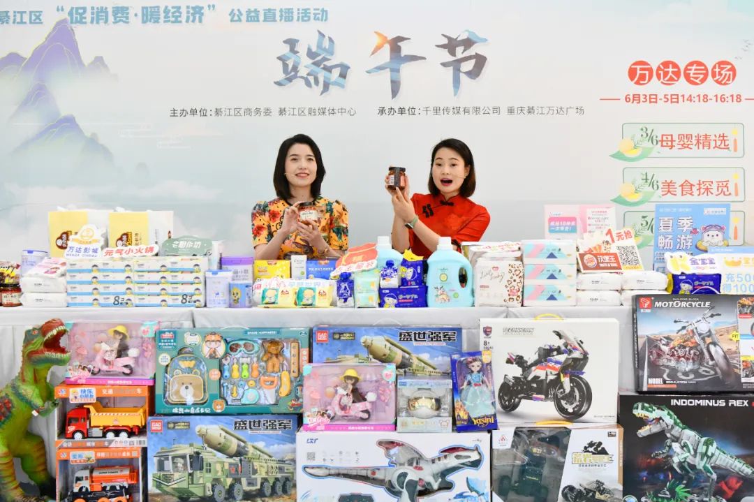 直播现场,除了有爱倍淳洗衣液、爱可依防蚊喷雾、安琪安婴卡尔鱼肝油等母婴大牌好物外,还有饭遭殃系列产品、金角老四川牛肉干以及千百度啦咝豆干等綦江明星产品。来自北京、成都、江西等地的网友通过大美綦江APP、綦江发布视频号、綦江万达广场视频号等平台观看直播,“云”上过端午,足不出户购好物。