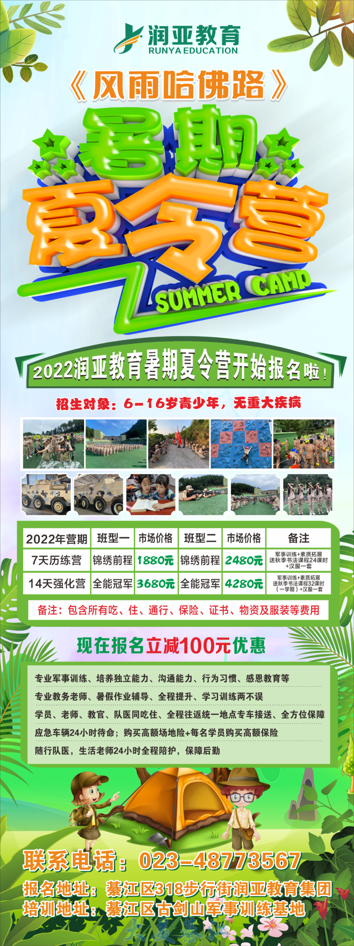 体验军旅生活:亲临军事体验:综合成长提升,多元军事素质挑战;军事拓展训练:专业军事拓展训练,内砺坚韧品质,外修强健体魄;野外生存训练:多地形生存素质训练,体验野外行军、战地作战,战地求生等训练;自救互救训练:国际自救互救技术掌握,多维度体验心肺复苏、自我救护技巧。