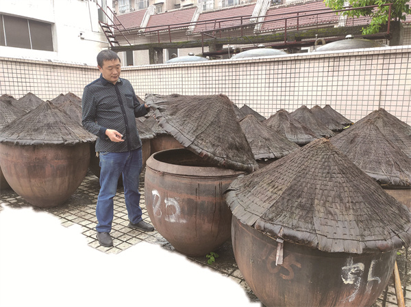 杨超查看发酵的陈醋