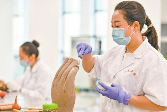 “在这里,文物修复工作者将对患病文物开展清洗、加固、补形等‘治疗’。”陈卉丽表示,文物修复需要耗费大量的时间和精力,需要文物修复工作者具备精益求精的工匠精神,有耐心、有责任心,以及对文物的敬畏心。