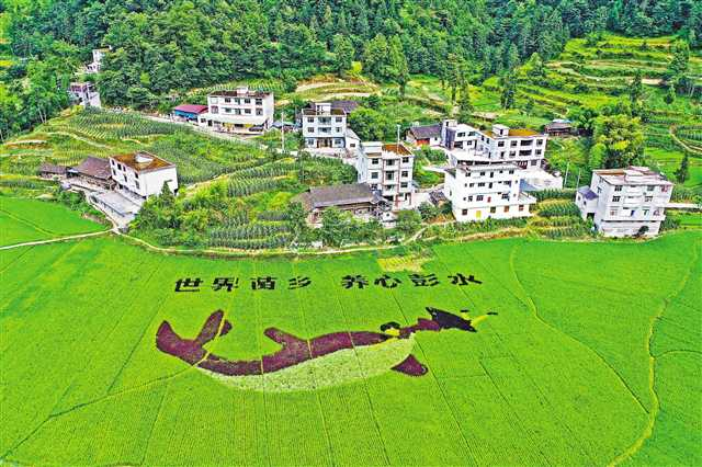 ▲彭水苗族土家族自治县太原镇区阳村打造的五彩稻田旅游景点。特约摄影 赵勇 摄视觉重庆