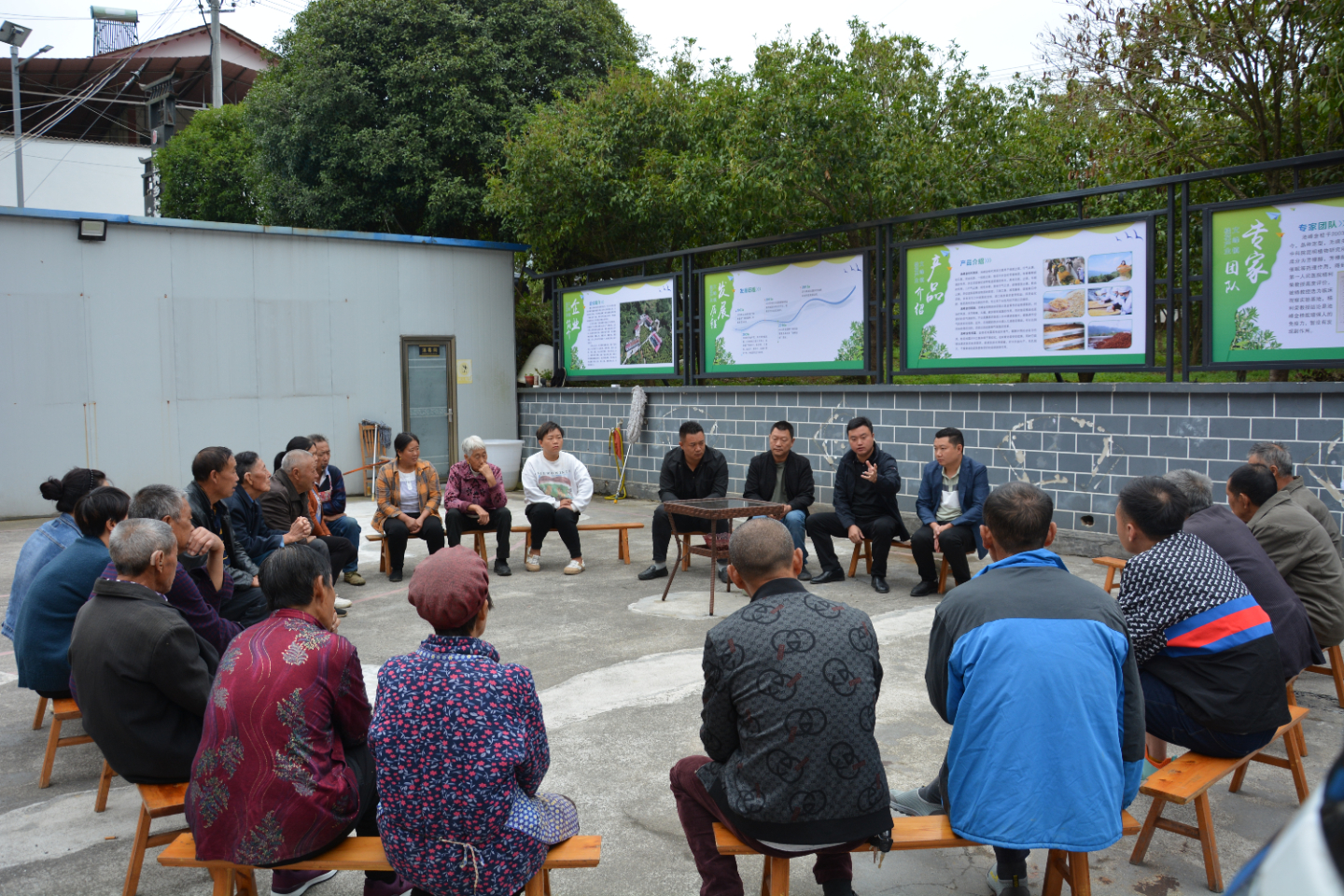9月2日,在文峰镇三宝村舒家坪,镇长以及三宝村支部书记与舒家坪20余户住户围坐一起谈心话家常,讨论舒家坪网格示范点文明积分和清洁卫生问题。