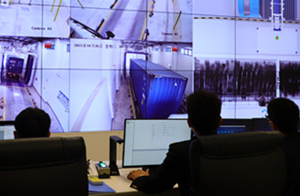 智能中控室里,胡万琪和同事们远程操控集装箱装载、卸载,无需再进入作业现场,到场桥操作室,“只需要10多人,就可以完成智能化操控,再也不需要在24米高的场桥上下、来回进行操作。”
