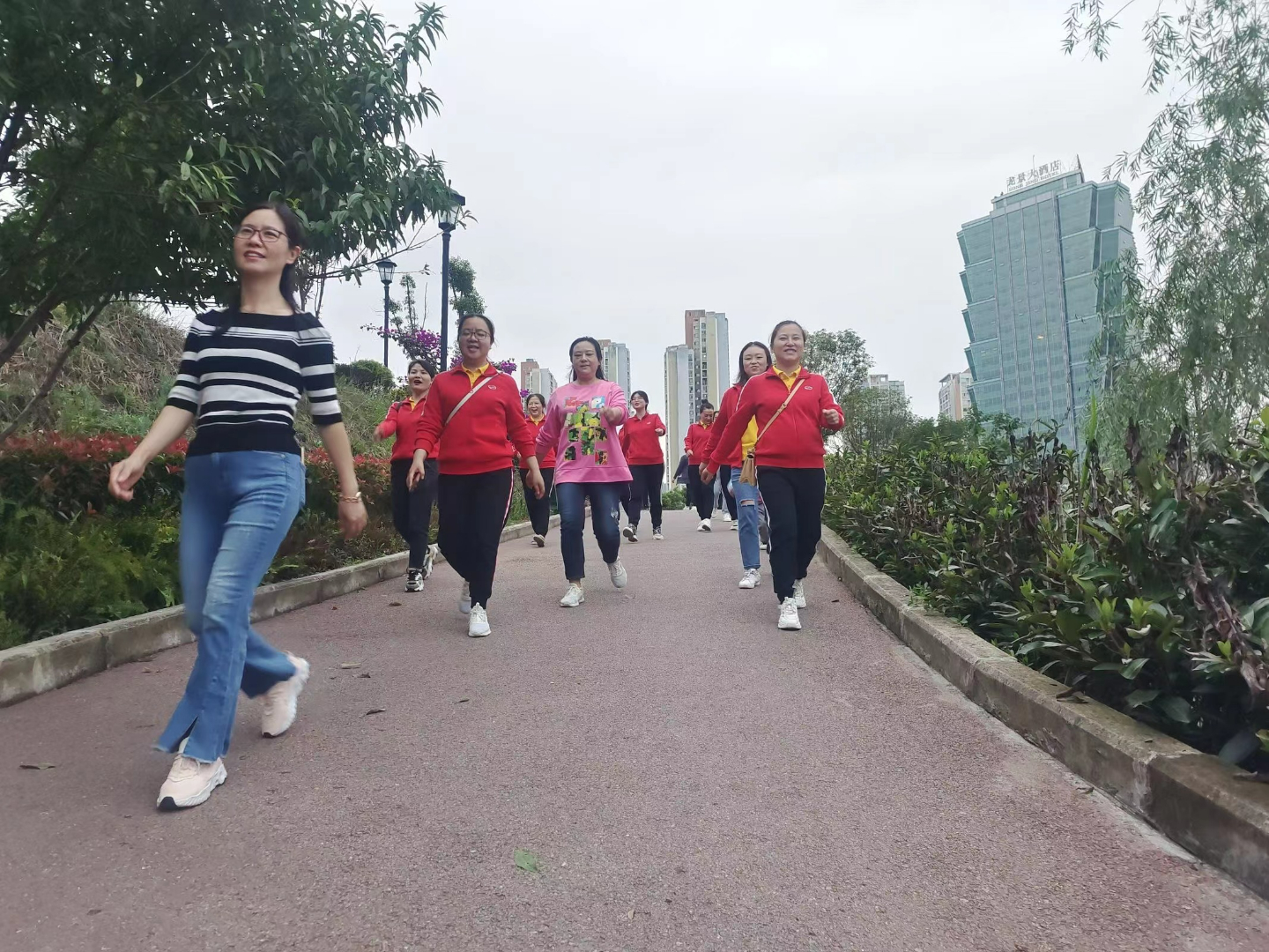意气风发的健步行队伍,迈着矫健的步伐,高喊着“幸福双幼、激情双幼、追梦双幼、风采双幼”的口号,行走于龙景湖公园。在美景的陪伴下,大家步伐统一、口号嘹亮、精神抖擞、三五成行、互相鼓励,一路上你追我赶,尽情感悟自然之美,体验运动之趣,充分发扬顽强拼搏、团结协作的宝贵精神,展示出双幼人不言放弃、拼搏进取的靓丽风采。