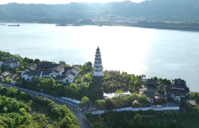 在兴义镇长江之滨,矗立着一座白塔,名为培元塔。当地人称为“上白塔”,它是丰都县文物保护单位。它的塔身为白色,高近百米。塔周筑台观景,游人倚伫古拙的白塔,远眺长江中的帆影点点。在天朗气清时,可以看见它与长江北岸的“培文塔”遥相呼应。青山叠翠、一江两塔,所以这里也就有了“江帆塔影”的美称。