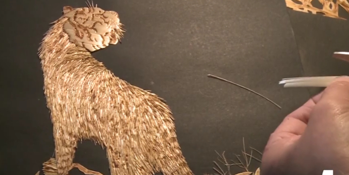 浦阿姨告诉记者,她是在当地街道、社区的牵线搭桥下,才开始接触和学习麦草画的。她原本就有较好的刺绣、剪纸等方面的基础。学习了麦草画之后,经过多年的摸索,逐渐掌握了这门技艺。浦阿姨介绍,从制好的麦秆,到完成一幅麦草画,当中就需要剪、烫、粘贴、组合等十几道工序。稍微复杂一点的作品,制作时间动辄就是十天半月。