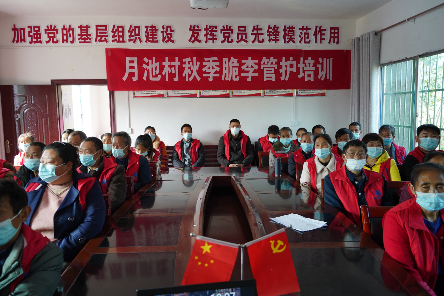 11月9日,三溪乡月池村组织全村村民开展脆李管护技术培训,为来年的脆李丰收做好准备。