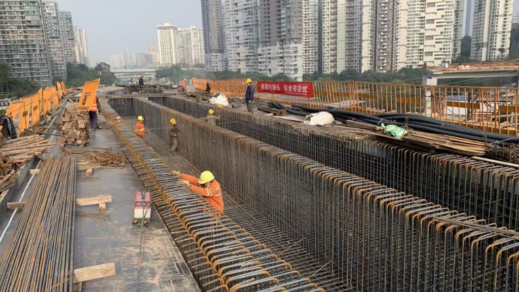 在大学城复线隧道项目,目前正在实施西山立交主线及B匝道、D匝道和红槽房立交A匝道、B匝道、C匝道、D匝道、F匝道和隧道结构工程,形象进度累计完成21%。