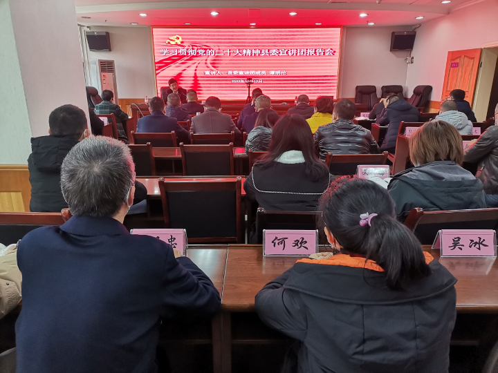 12月12日下午,县委宣讲团成员、县政协专职常委、学习联络委主任谭明伦为县应急管理局干部职工宣讲党的二十大精神。