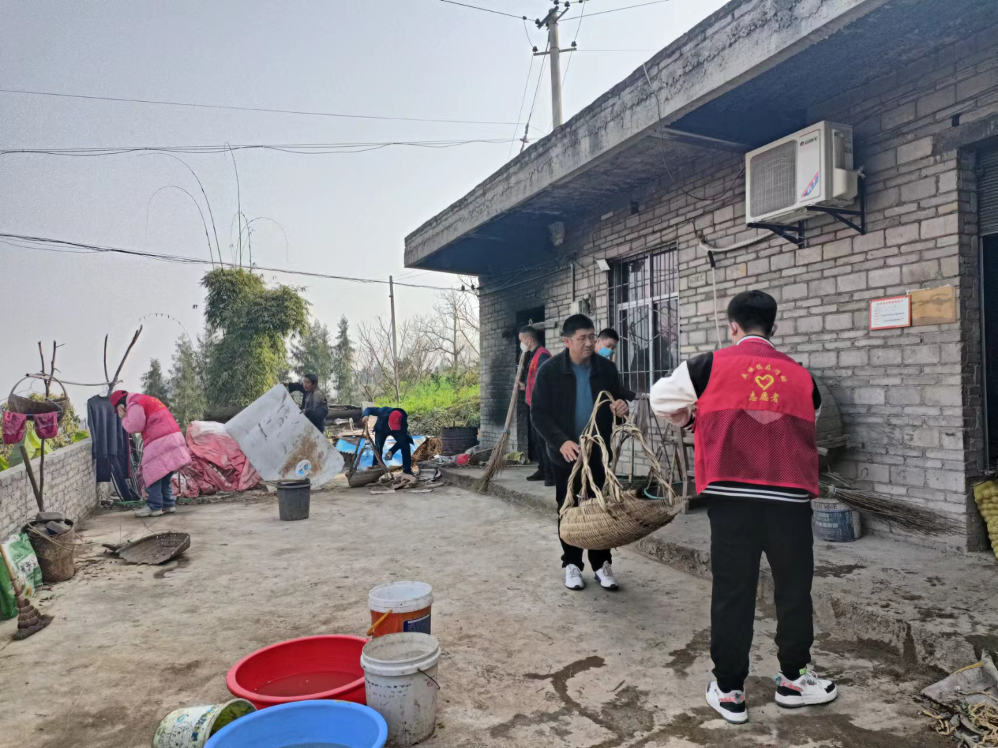 “老人家,您们平时的生活垃圾不要乱扔哦!农务物品可以分类摆放,房前屋后的杂草也可以随时清除一下,要过年了,把家收拾干净整洁,环境好了,自己住着也舒服些……”潘化付是村里的低保老人,志愿者们一边打扫卫生,一边给老人讲解巩固拓展脱贫攻坚的成果、重庆市文明行为条例和冬季用电、用火安全,引导他们自觉维持、爱护干净整洁的庭院环境。