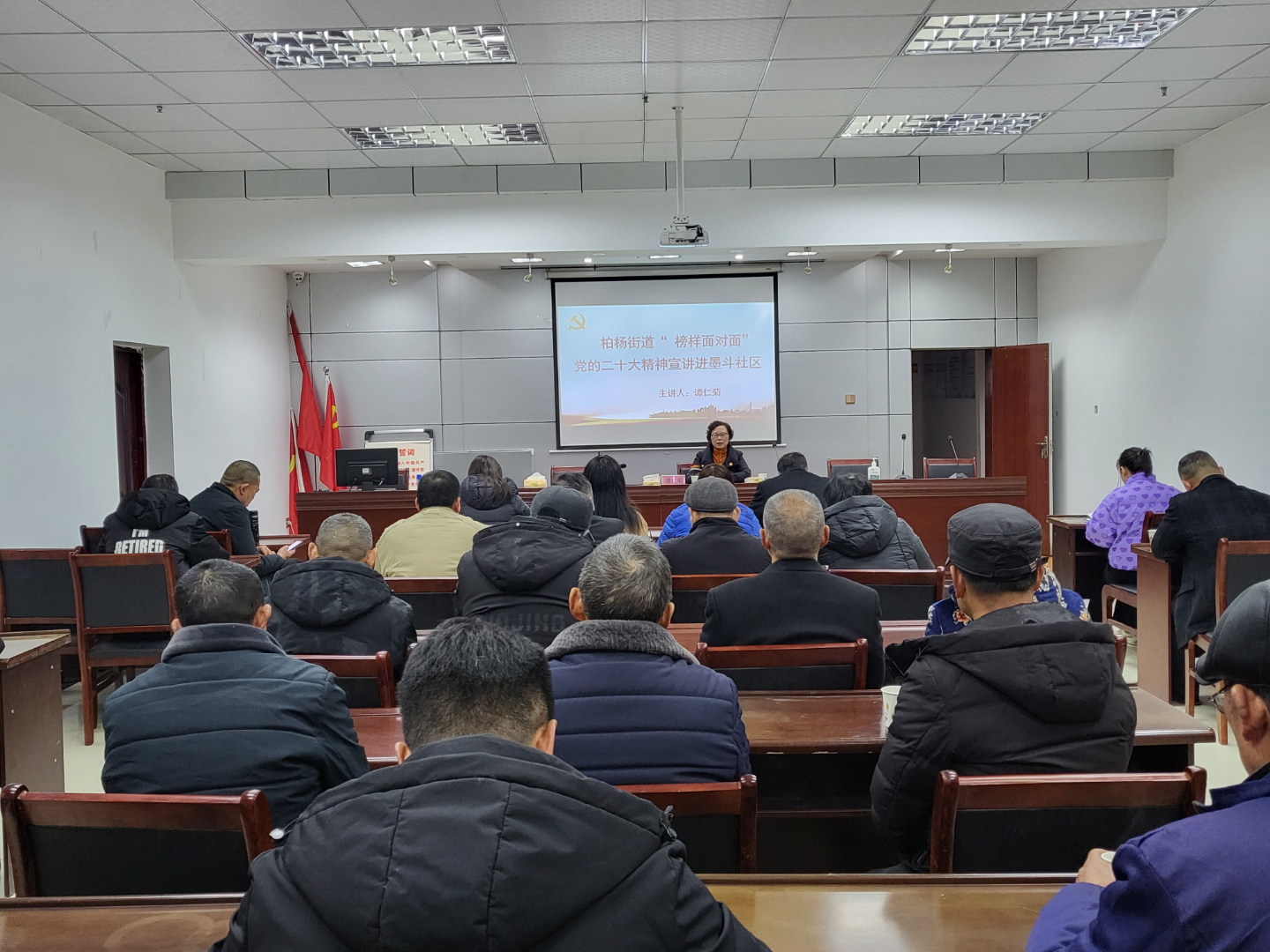 2月16日,柏杨街道“榜样面对面”党的二十大精神宣讲活动走进墨斗社区,辖区内部分党员、居民、各小区网格员、志愿者们齐聚一堂。