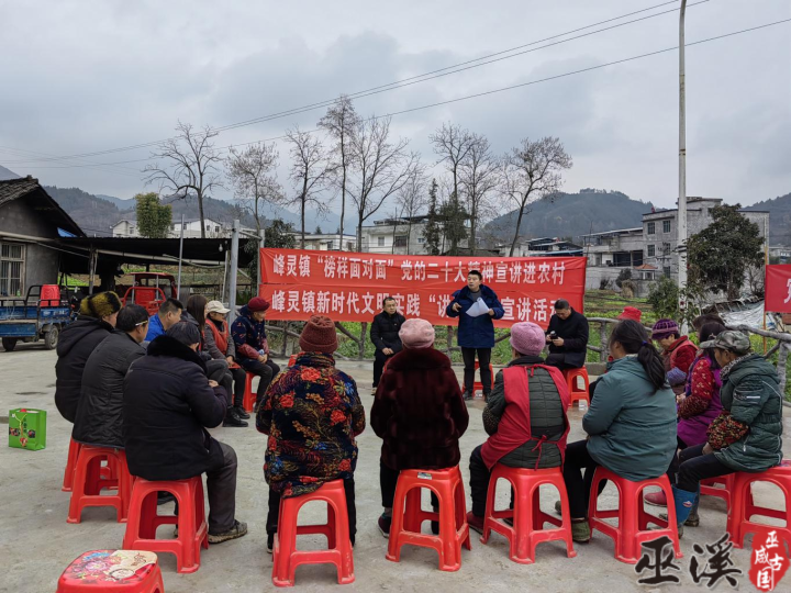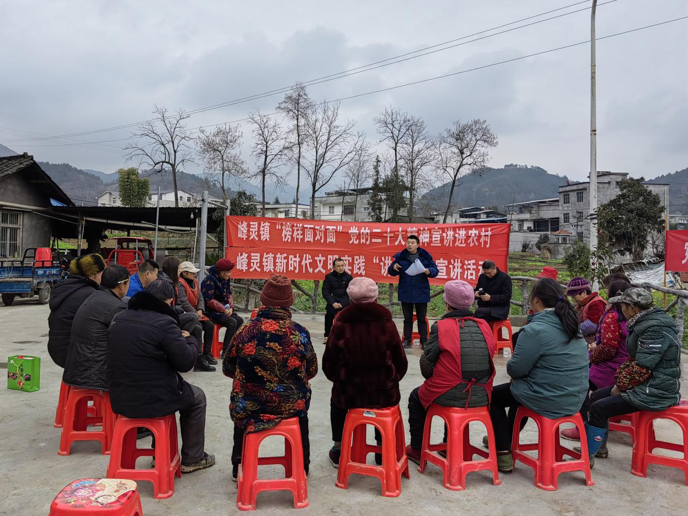 2月22日,峰灵镇开展“榜样面对面”党的二十大精神宣讲进农村院坝会。峰灵镇谭家村支部副书记、市第六次党代会党代表李天杰宣讲党的二十大精神。(通讯员 龙滔)