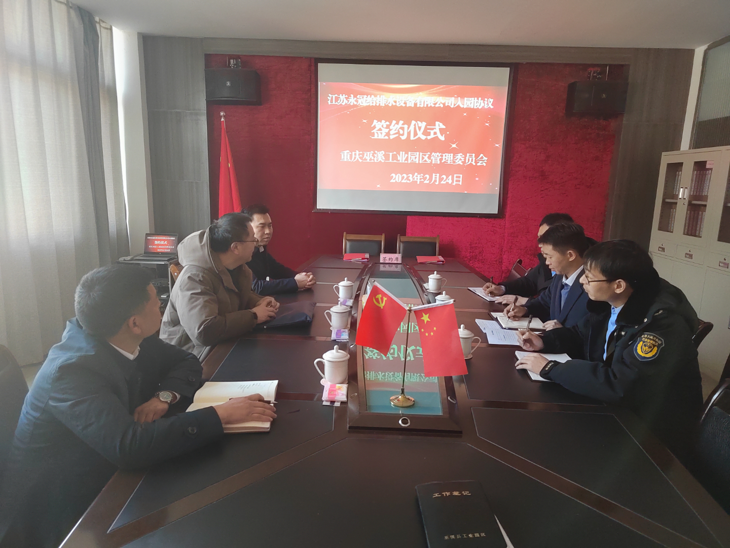 2月24日,巫溪工业园区管委会与江苏永冠给排水设备有限公司在园区三楼会议室举行入园签约仪式。
