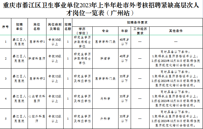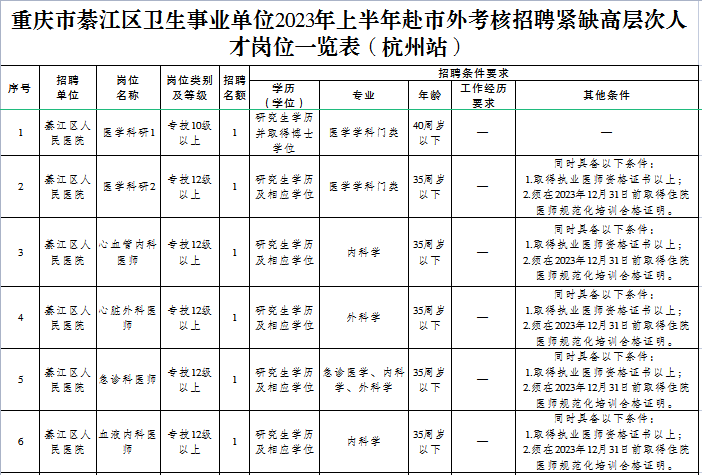 为优化人才结构,加强事业单位人才队伍建设,进一步满足江苏省人民医院重庆医院的发展和工作需求,现面向社会带编招聘一批紧缺高层次医疗卫生人才。